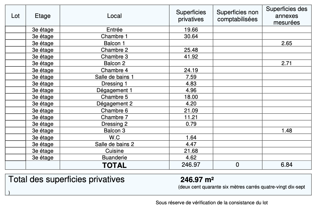Dépot de garantie : 3500€ soit un mois de loyer hors charges
