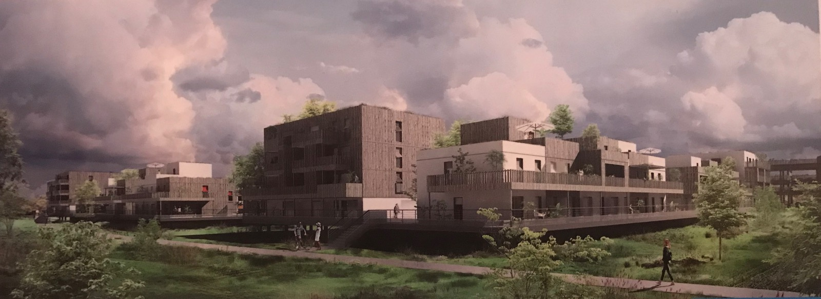 Ostwald, quartier des Rives du Bohrie, dans nouveau lotissement BBC de 2018, très belles maisons neuves de 3 à 5 pièces de 67 à 96m2 avec terrasse, jardin ou courette, traversant Nord - Sud, au calme absolu avec parking.