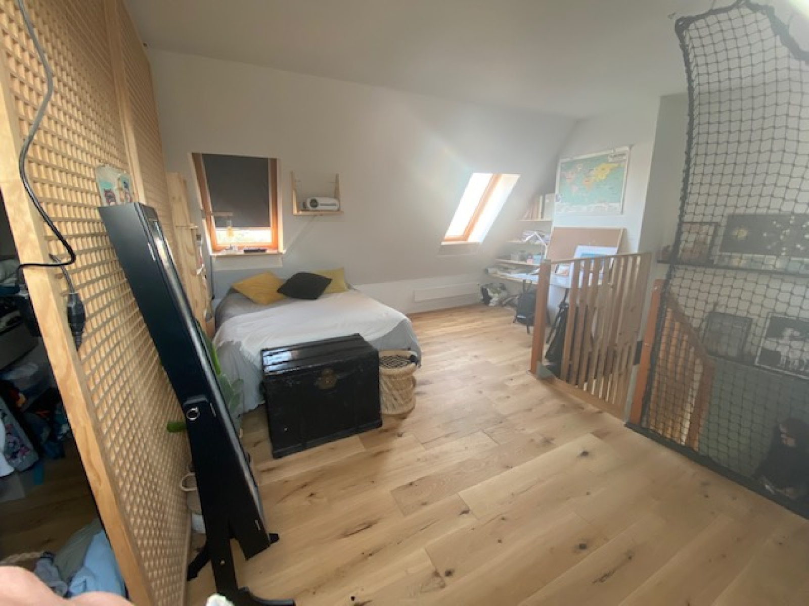 Décoration soignée, avec beaucoup de goût, très beau et spacieux séjour avec cuisine américaine de 40m2 au sol. Une grande salle de bain avec douche et WC. A l'étage, une large chambre avec dressing et coin bureau de 30m2 au sol qu'il est possible de convertir facilement en 2 chambres (ou chambre supplémentaire possible également dans le séjour).