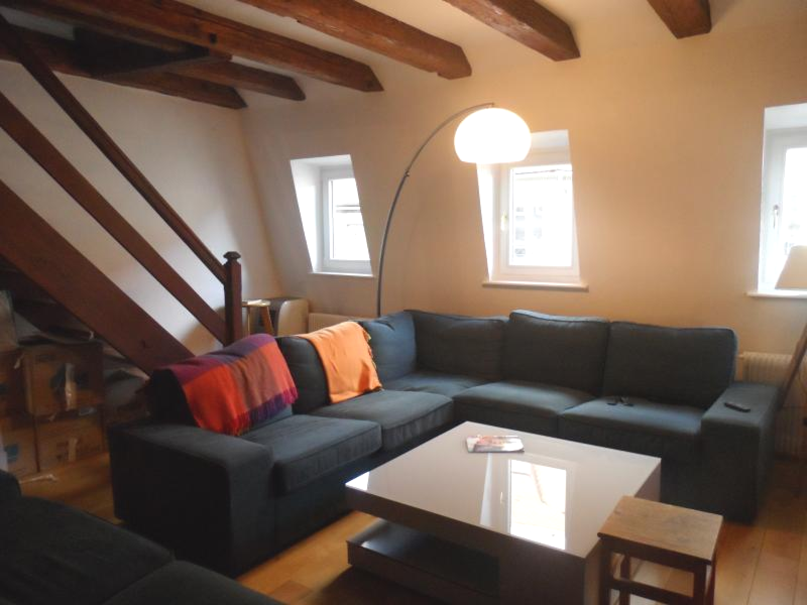 VENDU ! Beaucoup de cachet pour cet appartement en duplex de 175m² (env. surface au sol) dans l'hyper-centre de Strasbourg, au 4ème étage d'une petite coproprieté. (sans ascenseur) Il comprend 1 entrée avec placards, 1 double séjour traversant, 1 cuisine independante équipée, (possible cuisine US), 2 chambres, 1 salle de bains, 1 salle de douches, 1 cave. chaudiere ind.gaz basse temperature. Prestations : parquet massif dans le séjour, poutres apparentes, bibliothèque sur mesure, double vitrage, climatisation. Tarif : 550 000 € + 5% d'honoraires d'agence (27000€) charge acquéreur soit 577 000 € Votre contact : Mr FEY 06 62 87 31 48