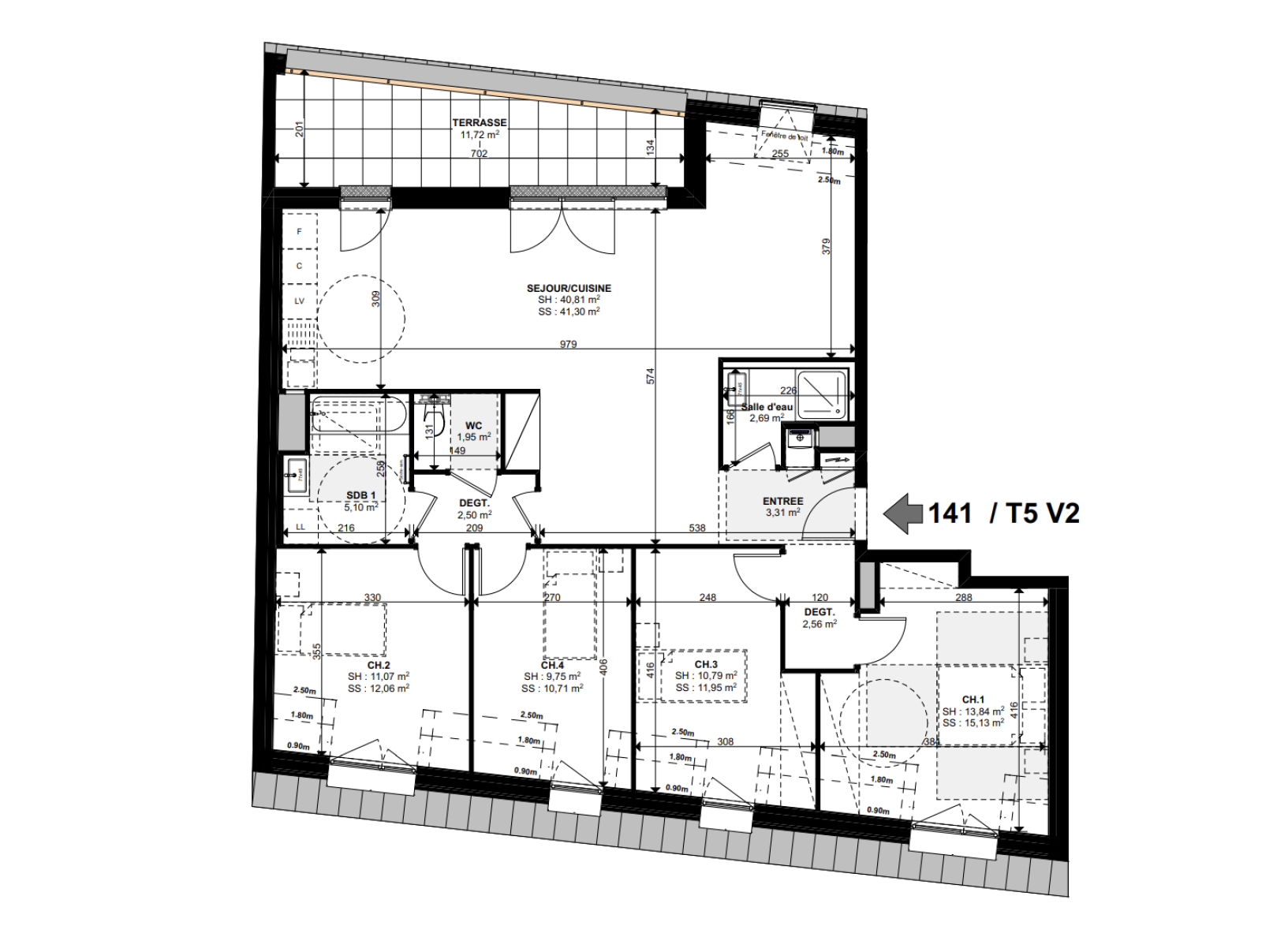 Neudorf - Schluthfeld, appartement 5 pièces de 97m2 avec balcon