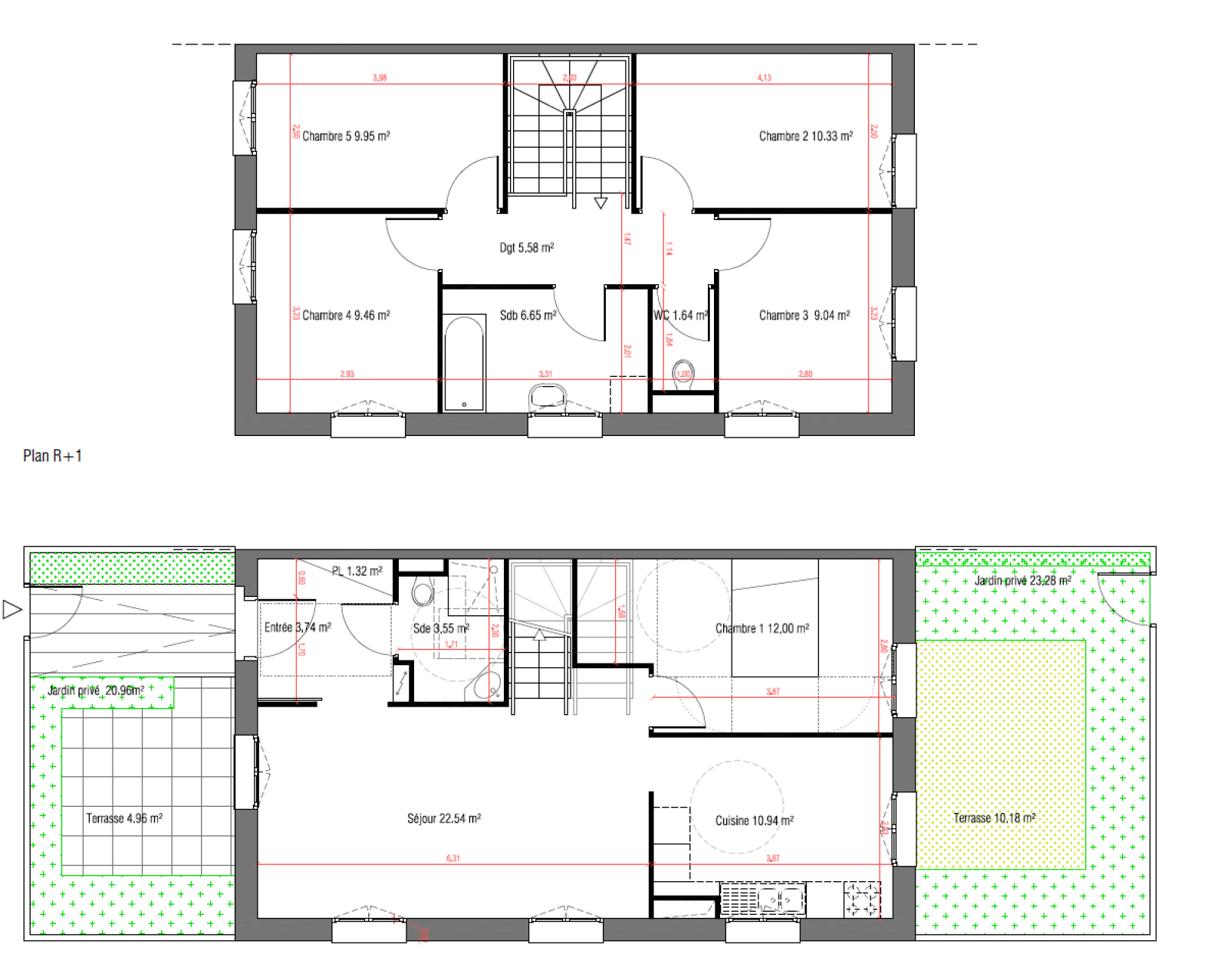 Neudorf - éco-quartier du Danube - Au bord de l'eau, dans résidence intimiste neuve, RT 2012, magnifique duplex 6 pièces de 107m2 comprenant au RDC un séjour de 23m2 avec une cuisine séparée de 10m2, une chambre de 12m2, une salle d'eau et un WC séparé. Accès à une terrasse et jardin de part et d'autre de l'appartement de presque 80m2 au total. A l'étage, 3 chambres de 9,5m2 et une de 10,5m2.