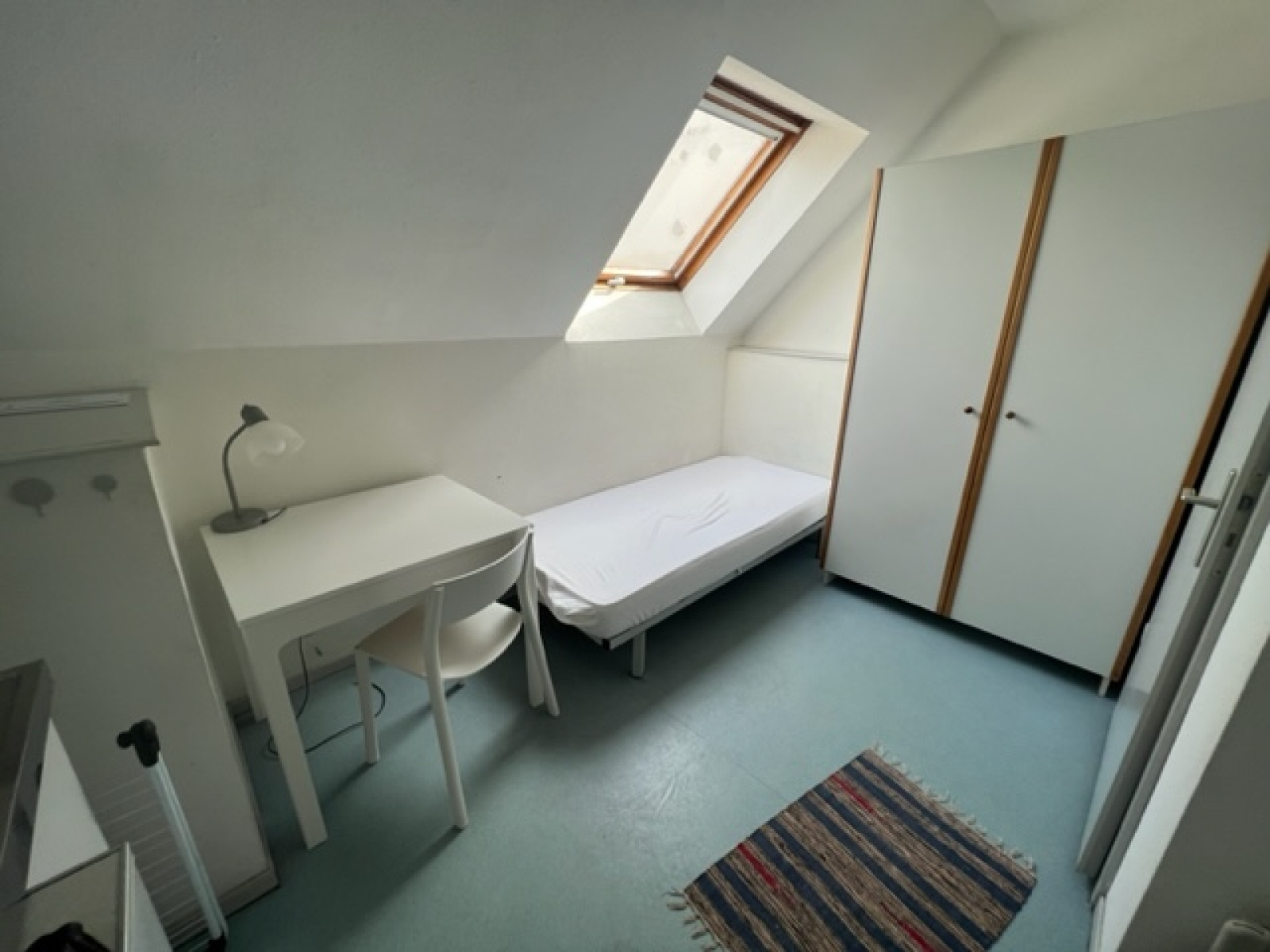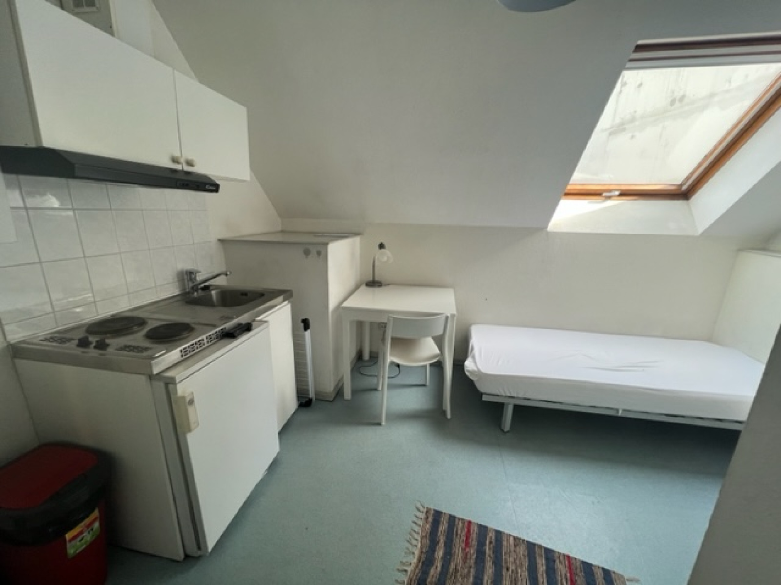 Krutenau, petit studio de 10,39m2 au 4ème et dernier étage sans ascenceur avec kitchenette, salle de bain avec baignoire et WC.